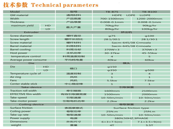 該設備生產低密度聚乙烯及高密度聚乙烯和線性低密度聚乙烯塑料薄膜,廣泛應用于食品、百貨、日用、化工、紡織品、購物背心袋及工業包裝。
